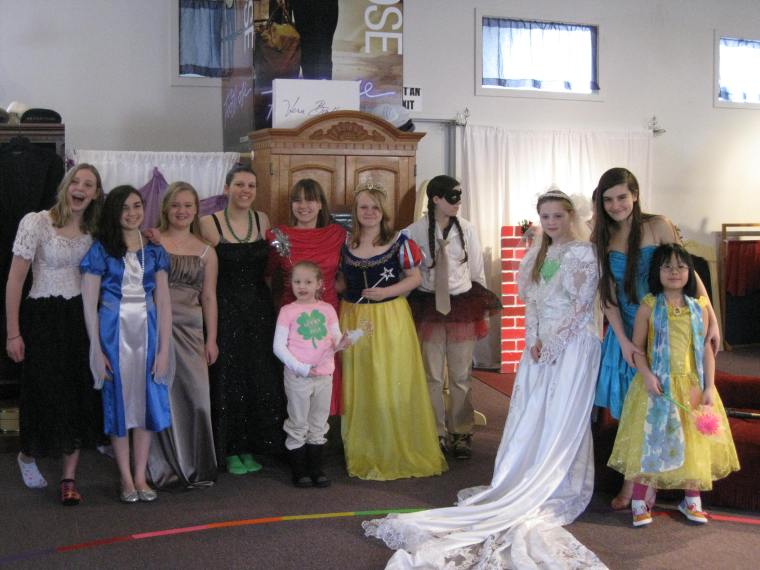 On March 17, 2013, Morrisville Assembly No. 107 held an official visit for Mrs. Helen Snedden, Supreme Deputy, and Sis. Nikki Schafer, Grand Worthy Advisor. The girls, along with two prospects, got together at A Musical Wardrobe, in Hulmeville, where they had a blast trying on a variety of costumes and dresses, ranging from SpongeBob and Snow White to beautiful, flowing ball gowns. There was even a snake outfit and of course, the traditional wedding gown with long train. With a warehouse of options to choose from, everyone went window-shopping crazy until they found just the right outfit to try on and accessorize. Even the adults joined in as fashion consultants to help the girls find the right sizes and colors.